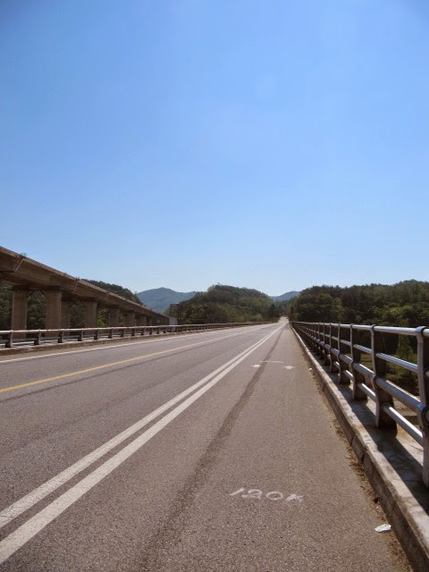 Throughout the summer, the husband and I worked on a DMZ bike trip project. We never had enough time to do it straight through, so we had to do it in 3 parts. There's no bike paths up there, and there are a ton of pretty big mountains. But, the nice thing is that there are not many people/ cars and you can see a lot of military bases. It's hard to follow maps up there because even if you look at the map and you see a road, that doesn't mean that non-military/residents are allowed to use it. Sometimes we would ride along a road for 10 km only to be told somewhere in the middle that we could not pass and we had to turn back and find another road. It's truly an adventure. A frustrating, wonderful adventure.